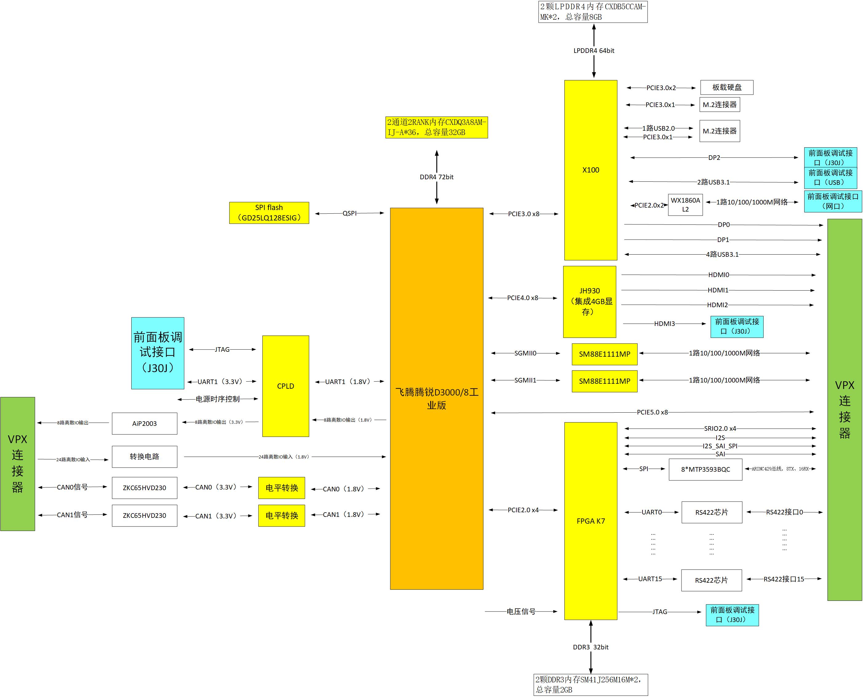 集成显卡: X100实现2路DP接口,通过VPX连接器引出;